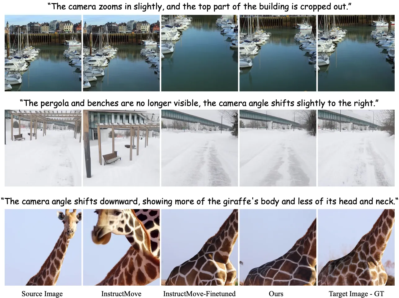 | Goal | Edit a source image based on a text instruction that includes motion (viewpoint shifts, object deformation, human moves, and interactions) |